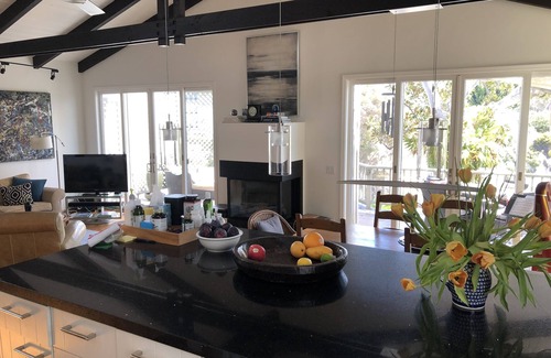 This beautiful single-family home located in Uptown San Diego's charming historic district of Mission Hills is available to rent Nov 4 through Jan 5, plus much of April and May 2026. Please check Calendar for current availability. Located in walkable Upscale Mission Hills - this bright and airy home offers style and privacy for a family of 3 - 4 or perhaps two adult couples traveling together. A well-behaved pet is also welcome. The dramatic Great Room boasts vaulted beamed ceilings, a switch-activated gas fireplace, comfortable Pottery Barn and Italian leather furnishings. and gleaming hardwood floors. The open Kitchen is stocked with high-end appliances and cooking tools for the chef-enthusiast. There are 2 bedrooms, separated by private hallways, each bedroom with a high quality King bed and accompanying bathroom with walk-in tiled showers. Enjoy climate-controlled mini-split air-conditioning or thermostatically controlled heating by room, plus the cozy warmth of the Living Room's gas fireplace. Out front - relax under the pergola adjacent the stone driveway which provides one on-site parking space. At the east side of the house - slide glass doors open to enjoy a very private deck terrace - an ideal spot for morning coffee or an evening glass of wine. Here one can relax and unwind under the stars - enjoying views of the city and nearby canyons. This property's central location is ideal for exploring both Uptown and bustling Downtown San Diego, 1200 acre Balboa Park, and its amazing Zoo. Historic Old Town is 5 minutes down the Washington Street hill. For those who love to walk - stroll a few blocks to upscale food markets, cheese and gelato shops, pizzerias, and specialty restaurants. Picturesque historic homes line the streets of Old Mission Hills while there are dozens of diverse eateries including the city's best bakery + coffee, just 6 blocks west in Hillcrest. If renting a car - this property is 3 minutes from Interstate 5 with spectacular Coronado Island only 10 minutes south, or popular La Jolla 20 minutes to the north. Most conveniently, one can get to San Diego International Airport in less than 10 minutes. The European owners divide their time between Germany and San Diego and take genuine pride in sharing their wonderful San Diego home while away. Our annual VRBO guests often comment how much they LOVE staying here!