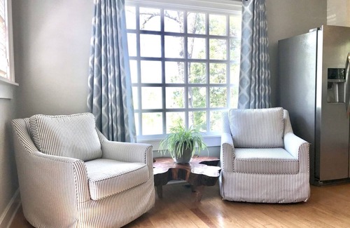 Step inside this charming residence, where modern amenities blend seamlessly with historic charm. Featuring three spa-like bathrooms and two fully-equipped kitchens, the Gorgeous Farmhouse at Ramsay Estate ensures a comfortable and convenient experience for all. The open-concept living areas are adorned with large windows that showcase breathtaking vineyard views, while the outdoor deck provides a perfect spot for al fresco dining or relaxation. Each bedroom includes smart TVs and cozy queen beds, making it an ideal sanctuary for you and your wedding party to unwind before the big day.