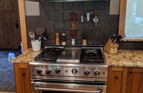 There is plenty of space for gathering with friends and family at Tahoma Canyon Home. The spacious open floor plan is great for entertaining. The high ceilings and tall windows frame Mount Wow, tall trees and the trout pond. There are beautiful hickory floors throughout the house with tile bathrooms, entryway, and mud room. Custom woodworking, cabinetry, live edge window sills, gas fireplace with hand build stone surround, and many other extraordinary craftsman details are found throughout the home.