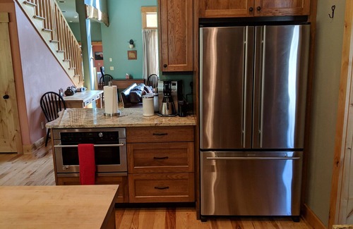 The big kitchen is well equipped! Prepare big meals for you group and dine together at the harvest table.