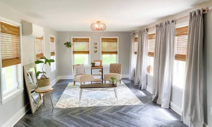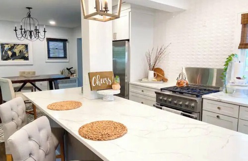 This fully remodeled house is full of charm! Three of the four bedrooms have queen-sized beds, the fourth has a twin-sized bed. Some of the great features include an awesome/full-sized kitchen, a sunroom with windows on three walls, a bonus attic work-space, a working gas fireplace, on-site washer and dryer, parking for 6+ cars and an outdoor "party-patio" with a fire pit. There is keyless entry, a security system and outdoor cameras. If you like charm, you will love this place!