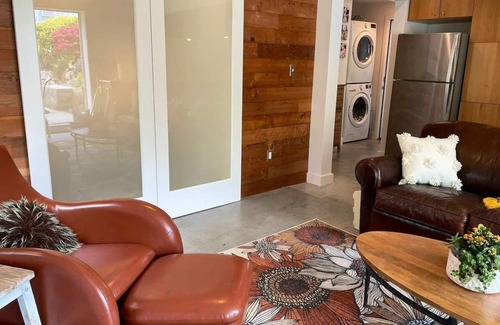 Brand new, modern apartment with your own private outdoor patio surrounded by flowers and veggies. Sleep well on the king-sized bed with pillow top mattress and modern bathroom.