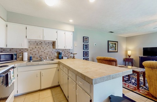 Wake up to a beautiful water view and enjoy your morning coffee from the fully equipped kitchen, complete with a coffee maker, fridge, microwave, oven, stove, and toaster. Fresh linens and towels are provided for your comfort.