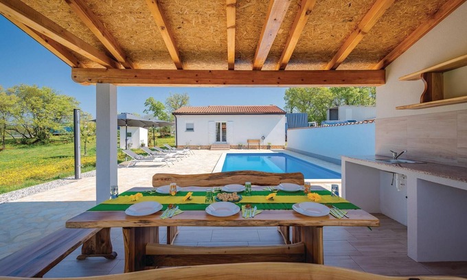 Gorgeous home in Buje with kitchen is located in Kastel. Gorgeous home in Buje with kitchen provides accommodation, featuring Laundry, Parking, Pool, among other amenities. This House features Laundry, Parking, Pool, to make your stay a comfortable one.