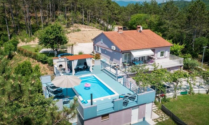 This vacation home is located almost in the heart of Istria and offers the ideal setting for a wonderful vacation with the whole family. The vacation home is built on a hilly terrain and you will stay here surrounded by fragrant pine trees. Modern and lovingly furnished interiors offer a comfortable stay for up to eight people. On hot summer days, the beautiful outdoor pool promises wonderful refreshment. Discover the beauty of the Istrian peninsula from this vacation home, enjoy first-class food and the famous wines in the local taverns and restaurants and relax in a beautiful, natural environment.