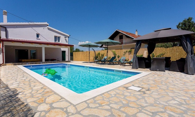 Yes, this Gorgeous home in Lovrec has a swimming pool. Check the Facility Overview section for details about the pool and other available facilities.