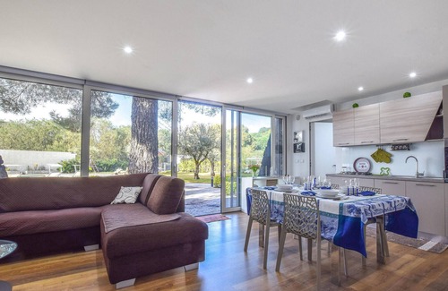 Spend a vacation in this vacation home that the whole family will remember with pleasure later. Up to 6 people can be accommodated in the house with 2 bedrooms and 2 bathrooms. From the bedrooms you have direct access to the outdoors. Equipment and furnishings are modern and comfortable, here you will find everything you need for a successful stay. In the private fenced garden there is a seesaw and a bouncy castle for children. Refresh yourself in the pool, which is available for you from April to the end of October. For your cars see 4 parking spaces available.
