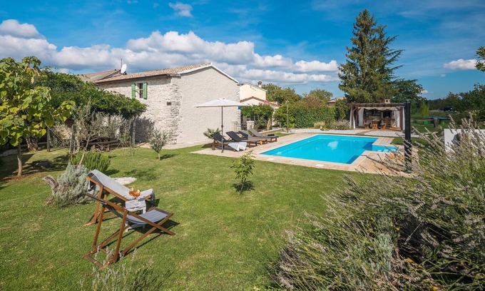 Romantic stone house renovated in the original style for lovers of a cozy way of life. The antique furnished vacation home consists of two units, ideal for two families who like to be among themselves from time to time. The pool provides additional well-being on the well-kept meadow property. The house includes an open fireplace with a covered seating area where you can enjoy local wines. Upon request, the landlord will help you pick mushrooms or stab wild asparagus, or prepare vegetable dishes. For an extra charge, the landlord offers draft beer. A badminton/volleyball court is available.Heki is a traditional and tranquil place in an idyllic landscape. Nearby you can play tennis, soccer and handball. Driving west, you will be greeted by the beautiful old town of Rovinj. To the east, the resort of Rabac and numerous bays with beautiful beaches and crystal clear sea await you. In the south you will find the cultural city of Pula, which houses many, historical monuments, such as the Roman amphitheater. In the north you will meet the picturesque medieval town of Motovun.