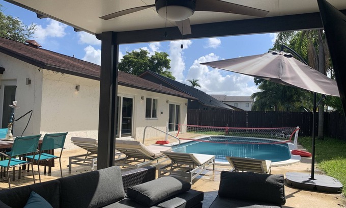 Beautiful private home near Aventura Mall …very modern remodeled home with a private pool, barbecue, pergola with smart TV and seating for 8. Outside or inside dinning. Clean and renovated bathrooms …you and your family will definitely love to stay here! Very family oriented!!! Can’t wait to host your family!!! House suitable for up to 8 guests at any time. Additional guests have to be pre approved by host. No parties/events allowed. Quiet hours are between 10pm and 8am