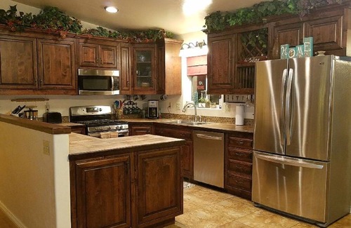 Lovely and comfortable 2 bedroom 2 bath home with third bedroom located in the office. Lots of mature landscaping. Great backyard for relaxing and BBQ. Hot tub right outside the Master Bedroom for that romantic star gazing moment. Located near many great attractions such as, Whiskey Row 7 miles away, Grand Canyon 2 hrs. away. Many great hiking spots and vineyards in the area. This home has beautiful landscaping front and back yards, if you are looking to rent days that are blocked, please message owner with request as this home is owner occupied when not rented. I have a tiny home located on the side of the house that has a completely separate entrance and separate from the main house. Please do not park in front of the gate located near the garage. This home has no garage access, Plenty of parking