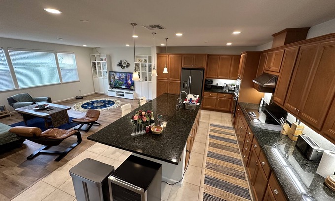 Gorgeous House 4 You: 4B+25b+Office+12' Kitchen Island is located in Tracy. Gorgeous House 4 You: 4B+25b+Office+12' Kitchen Island provides accommodation, featuring Kitchen, Security/Safety, Bedding/Linens, among other amenities. This House features Kitchen, Security/Safety, Bedding/Linens, to make your stay a comfortable one.