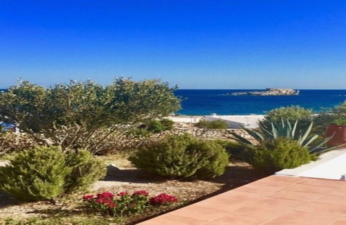 This Kimolos island vacation rental has 180' views of ocean bliss located in close proximity to the village, popular beaches, and port of Psathi, this retreat is nestled far enough for privacy, and close enough for comfort. The island itself is a short 15 min water taxi ride to the popular island of Milos!