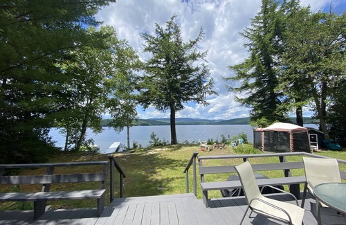 Beautifully renovated last year, the main house is 40 feet from crystal clear water. Embden Pond is one of the cleanest lakes in Maine. Sit on the deck or dock and watch the breathtaking sunsets across the mountain range while you listen to the loons. This spot is wooded on both sides to create nice privacy. We have a fire pit and hammock at the water's edge.