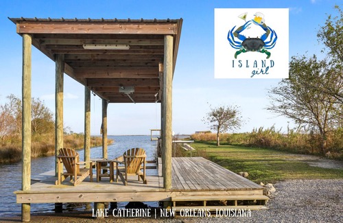 Island Girl is a beautiful lakefront home just 30minutes from the heart of New Orleans that comfortably accommodates up to 6 guests. The residence boasts a gourmet kitchen with stainless steel appliances and convenient bar seating that seamlessly transitions to the dining and living areas. Guests will love this social space’s hardwood floors and large windows that take full advantage of the breathtaking lake views. French doors offer quick access to the home’s wrap-around deck where there is a dining table, gas grill, and more of those amazing Lake Catherine views.