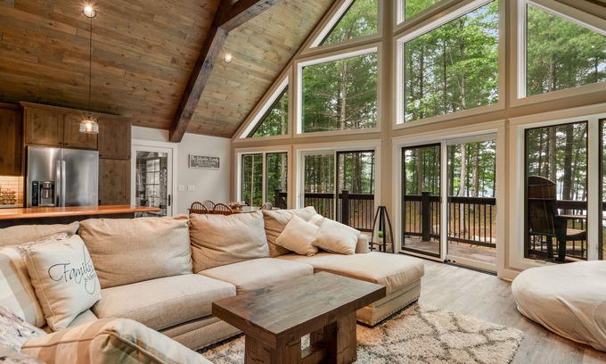 - Lakefront dog-friendly retreat with sauna, dock, canoe, paddle board, & firepit