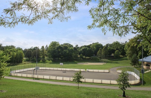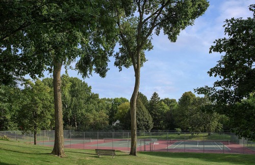 In park next to house: winter sledding hill, ice skating, tennis courts, basketball, playground!