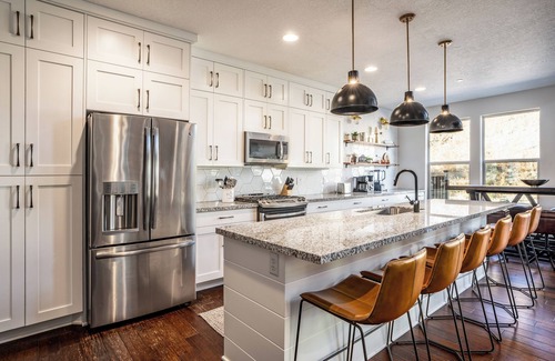 The property is equipped with streaming TVs (7), high speed internet, central air conditioning, and a beautiful modern barnwood fireplace for cozy gathering. The townhome also comes well-equipped for cooking on the Weber Grill or in the kitchen along with a Keurig Coffee maker and ice crushing blender.
