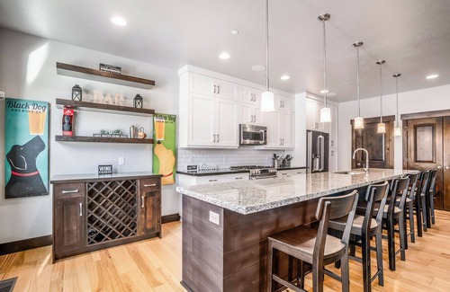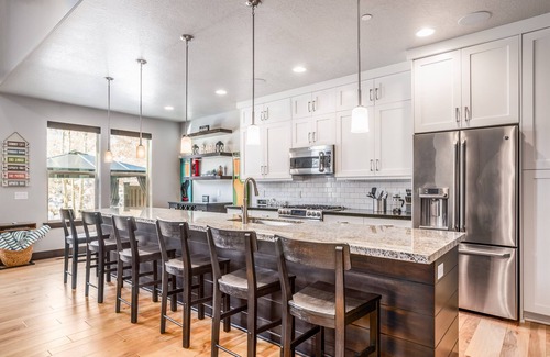 This townhome very desirable for various guest groups like multi-generational family stays, Sundance executive, corporate retreats, singles getaways and more. The neighborhood's common area movie theater, fitness center, seasonal pool and year-round hot tub, grilling pavilion, and billiard room area are great additions to the townhome's private hot tub, grill, and multiple family rooms for entertaining!