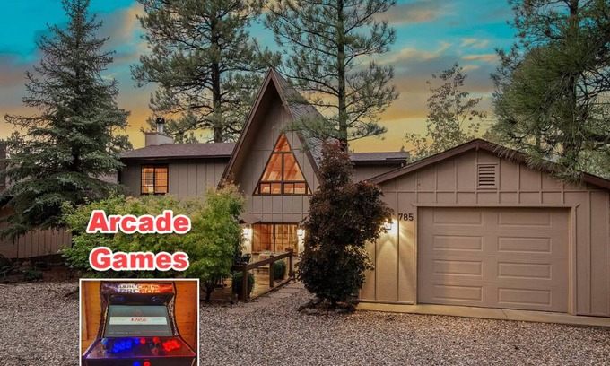 After a fullday of skiing, hiking, or mountain biking, the fireplace awaits at this beautiful Munds Park retreat. The 2-story A-frame cabin offers knotty pine vaulted ceilings, a fireplace, multiple decks, Smart tv's, game consoles, custom arcade, modern furnishings, WiFi, gas grill, and central heat. Spend the day exploring Munds Park, visit Downtown Flagstaff for excellent shopping, dining and nightlife, or take a scenic drive to Sedona to see the famous red rocks and state parks.