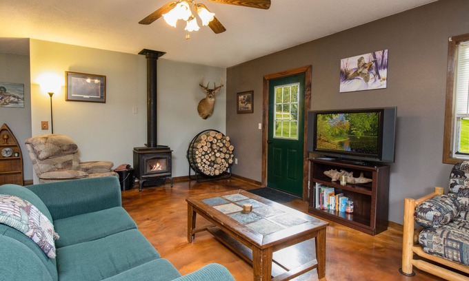 Peaceful country setting with privacy and access to river. Located just 11 miles from shopping and dining and in the midst of prime hunting and fishing locations. Also near ATV and snowmobile trails for our outdoors lovers! River, hunting and fishing, shopping, dining, golf course, snowmobiling, and so much more!