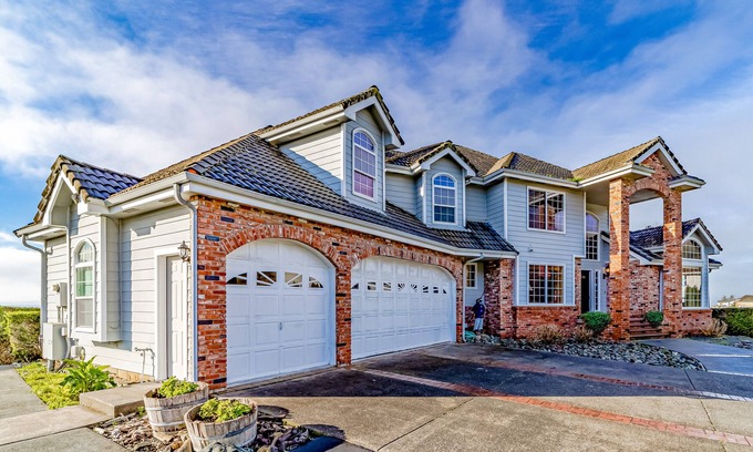 The magnificence of this Brookings vacation rental will take your breath away, not only for its grandeur but for its perfect location - a lush hill with the Oregon Coast below. Whoever you bring, there is space for everyone here! Located just eight minutes south of Brookings proper and less than half a mile from McVay Rock State Recreation Site, your party will enjoy the fantastic scenery in the valley of beautiful Oregon foothills as well as close proximity to state parks, secluded beaches, golf greens, and boating opportunities.