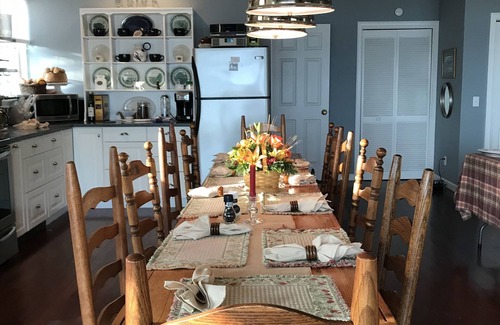 What makes this rental so unique is the way it is configured. Each floor can be used as an entirely separate unit, because each has a full kitchen, bath, sleeping, dining, and living area. There are three separate sleeping areas with very comfortable beds. The Barn at Mainstay can easily accommodate three couples, with two fold out sofa beds with brand new mattresses that are great for kids. The property would be ideal for two families traveling together, or for extended families. One favorite feature that brings lots of comments is the antique cast iron sink in the kitchen.