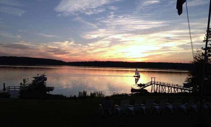 Gorgeous Oceanfront Sunsets With Dock and Beach at Low Tide! serves as an idyllic wedding accommodation, combining stunning views and convenient amenities. Nestled in the tranquil Waterfront Community of East Boothbay, this property offers everything you need for a memorable wedding stay.
