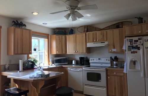 We have a fully stocked kitchen with a writing desk. We are Not Pet Friendly and not able to provide facilities for hunters and work crews.