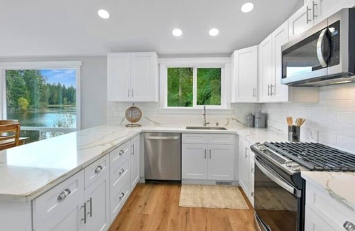**BRAND NEW to VRBO** 5 Star reviews on other platforms!! Lakefront gem on beautiful Island Lake. The fully remodeled home with beautiful finishes is a perfect place to plan your next getaway! Whether you enjoy the sweeping views from the large deck or take the kayaks out for a leisurely ride or fish around the lake, you're sure to find our spot is the perfect place to unwind, relax and have fun. Situated just 30 minutes from both Seattle ferry’s, minutes from Downtown Poulsbo this location can’t be beat!