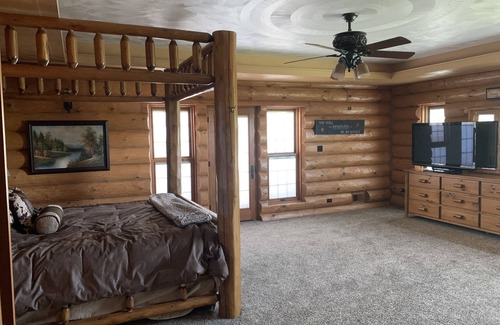 With 6 bedrooms, 3.5 baths and additional futons, loft beds and air mattresses, the lodge can sleep up to 30 guests comfortably not including couches. Our kitchen table seats 14 with 4 additional breakfast bar seats and a small seating area off to the next room. The kitchen is fully equipped to accommodate large meal service.