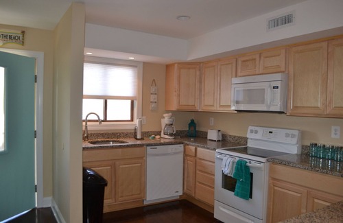 MUST BE 25 AND OLDER TO RENT OUR TOWNHOUSE. NO EXCEPTIONS. Rental is Saturday to Saturday during peak season. Clean two bedroom, two 1/2 bath townhouse with bunk bed, and queen pull-out sofa sleeper. Sleeps 6 adults (two queen beds and queen sofa). Bunk bed sleeps two children. Ideal for families! Pale paint and bright beachy décor combine to provide a relaxing get-away. Fully-equipped kitchen, dining area, living room with 43-inch screen Roku Smart TV and DVD player. The seashell bedroom has a queen bed with 43-inch screen Smart TV and the spacious nautical room has a queen bed and bunk bed (for children). Each bedroom has its own bathroom and a half bath is located on main floor. A comfortable sectional in the living room has a queen pull-out sofa. Located three blocks from the ocean and just steps from the back screened-in deck to Gorman Park (playground, tennis court, pickleball court, racquetball court, picnic tables, and grill). There are decks off of the front and back bedrooms to sit and relax. Close to many attractions such as mini golf, restaurants, kayaking, parasailing, and paddle boarding.