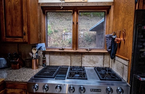The kitchen is stocked with all you need - all the dishes, pots and pans, wine glasses, double oven, gas stove, microwave, coffee maker, french press, blender, tea kettle....and a little extra like tea, coffee, popcorn, condiments and spices. There is even a fully charged boom so you can play your tunes!