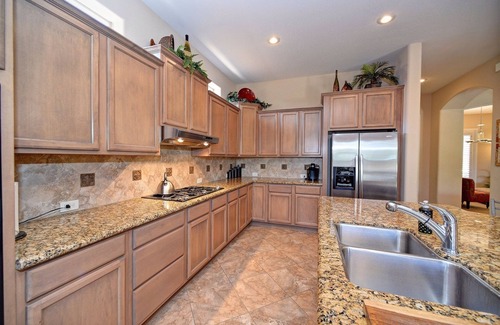 Each bedroom has its own bathroom which makes it ideal for guests or multiple family groups. Home is ideal for family gatherings, reunions, golf/tennis vacations, quiet romantic getaways. Perfect location for Spring Training, Nascar, Fiesta Bowl, World Class Golfing, Wigwam Resort, Resturants & shopping are minutes away.