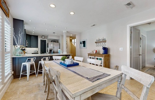 The open-concept living and dining areas are bathed in natural light and styled in elegant coastal décor, creating a warm, inviting atmosphere for gathering. This thoughtfully curated townhome also offers exceptional guest amenities designed with comfort in mind: full-sized shampoo, conditioner, and body wash in every bathroom; K-Cup coffee, detergent pods, trash bags, and essential kitchen items are provided to make your stay effortless from the moment you arrive. Step outside to enjoy a private backyard retreat with a lush landscape and a gas grill—complete with complimentary propane—ideal for al fresco dining and unwinding in a secluded setting.