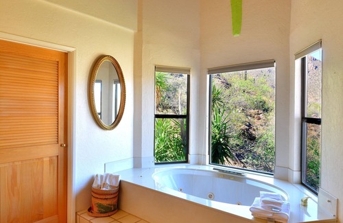 There is a full kitchen with updated appliances, Corian countertops and many areas for dining and entertainment. A kitchen alcove seats 6, formal dining room with seating for 6-10, an upper view deck with seating for 6 and lower view deck /patio with table seating for 4. The upper deck includes a gas barbecue grill. The lower deck has an oversize built-in spa with comfortable seating for 6. A beautiful place to enjoy the stars and night lights with a glass of wine.