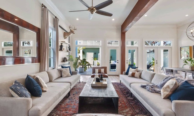 This premium home in the Garden District is next to everything NOLA has to offer. With its modern amenities, including a private pool, this home is perfect for those wanting a retreat in the middle of New Orleans. It is large and can fit your entire group of friends and family with its numerous bedrooms and bathrooms, plus additional versatile rooms that provide even more space and privacy! The professionally designed spaces offer open-concept layouts and kitchen & dining spaces perfect for entertaining.