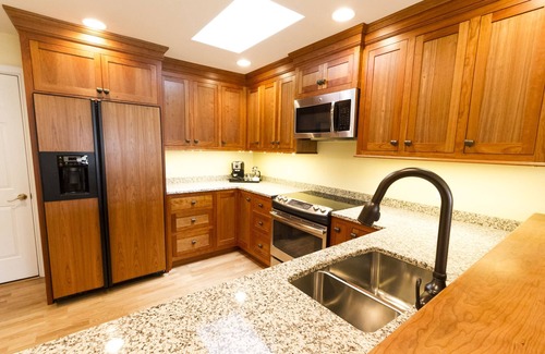 Our home offers custom-built kitchen cabinets and bathroom vanities, stainless steal appliances, white oak floors, lush carpeting, and a full-size front loading HE washer and dryer. New plumbing and fixtures, improved insulation, and an upgraded heating and instant hot water system, and ductless splits for added comfort.