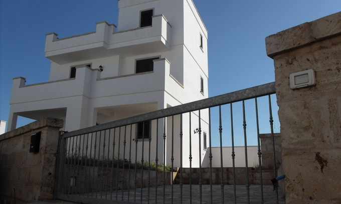 In the picturesque town of Santa Maria al Bagno (famous for the tower divided into four parts), just 5 minutes from the town of Gallipoli and its beaches and not far from the Regional Natural Park of Porto Selvaggio, rent beautiful detached villa recently built complete with wide verandas (with outdoor shower and stone barbecue), terrace equipped with gazebo overlooking the sea, balcony, garden and private parking. The property is on three levels: the ground floor is the living room with dining table, TV and sofa bed, kitchen equipped with brand new appliances and the first bathroom with shower and washing machine; on the second floor there are two double bedrooms overlooking a large balcony and the second bathroom also with shower; the third floor is the bedroom with two single beds overlooking the terrace with sea view.