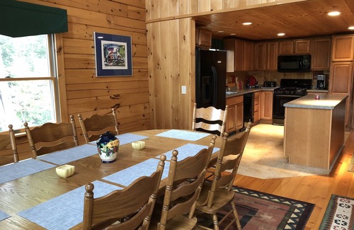 Bear Hollow is a 3 bedroom + loft, 2.5 bath log home just 14 minutes from Cannon Mountain & Mittersill. The perfect destination for all seasons, it's nestled in the mountains and woods of Franconia, NH. Easy access to the White Mountain National Forest for hiking, biking, zip-lines and swimming. There are several nearby golf courses and ski areas. The house has a wrap-around porch, fully equipped kitchen and gas fireplace. Reservations for guests over the age of 25 or families with children. No pets.