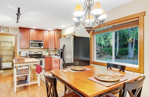 The sparkling kitchen is equipped with a full suite of stainless steel appliances. Start your mornings with coffee on the deck, which opens to a large yard and forested space. In the evenings, gather for stargazing around the wood-burning firepit. For days on the water, head just minutes to a handful of beautiful state parks nearby.