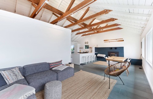 Newly updated in impeccable modern style, this home in Bodega Bay is a true surfer's paradise, offering beautiful views of Bodega Harbor from its large picture windows. The property, owned and meticulously decorated by avid surfers, is ideally situated across the road from the bay and within walking distance of the town's many shops and restaurants. Amenities like central heat will keep everyone comfortable. At this bungalow, you'll spend your days surfing, beachcombing, and fishing, and come home to a light-filled living space, a wood-burning stove, and an enclosed garden with a private Sauna where you can relax, light the grill, and talk about the day's adventures.
