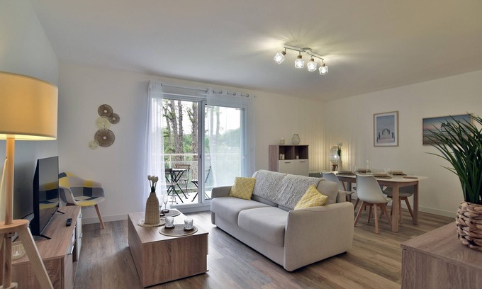 The apartment is ideally located in Matignon, in a very pleasant environment. You'll benefit near the apartment all the essential shops as well as boutiques, restaurants, bars, market...