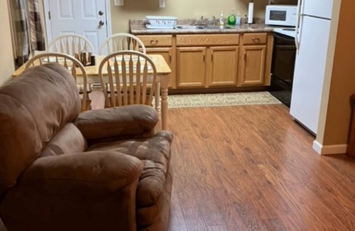 Welcome to my river front home! During your stay you will have access to the private lower level of the duplex. Inside you will find three bedrooms, a full bathroom, kitchen and living room area along with a full washer and dryer. Outside you will have access to the gazebo with table and chairs provided and newly built dock/fishing platform along the river's edge. You may also access the water with stairs and built handrail to cool off or to enjoy a relaxing river float, kayaks available at the home. Enjoy evenings around the fire pit or swing.