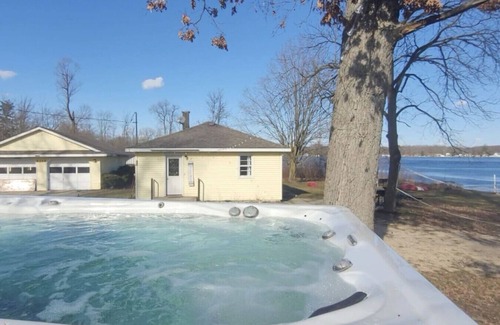 Lake front cottage on Campau Lake with free hot swim spa, outdoor pool, campfire, gas grill, and great view Sunshine cottage on Campau Lake just 20 minutes to Downtown Grand Rapids. This lakefront 2 bedroom with studio room for a king bed with waterfront is great and has a gas grill, firepit and access to all the fun you can plan with a relaxing location and a nice little town for everything you need just minutes away. We have transportation options if you want to get around.