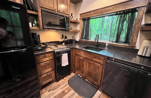 Take a break from the hustle and bustle of the city and unwind amongst the beautiful pines located across the mountain landscape. Wicklow Pines is a newly constructed luxury couples cabin that will have you leaving feeling fully relaxed and recharged. Our location is perfect for outdoor enthusiasts or couples that want to just relax and unwind. The standalone soaking bathtub is the perfect place to unwind and read a book or take in the view of the forest. The outdoor fire pit is the perfect cozy place to star gaze or roast marshmallows. The King size bed will leave you with a wonderful nights rest. You can enjoy your morning coffee or tea on one of the covered porches. Coffee and tea will be provided along with the basics for cooking to include pan spray and seasonings.