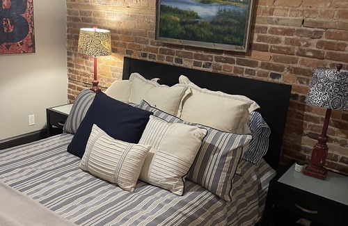 OMG! Floor to ceiling exposed brick walls with light beaming through the Plantation shutters outlining the oversized picture windows. The1925 original floors ooze charm from every plank. Park your car(s) just outside the covered front door, or in the back parking lot, and then walk to most anything you need. Wine bars, restaurants, boutique shopping, Coker College, and of course the bakery (wake up and go get their scones) with fresh goodies await you at every turn. Just steps away is the Vintage Wine and Craft experience ( say hello to my friend Cal, the owner), and less than a two minute walk is the Mantissa hotel's rooftop bar with fireplace. If you want to dine in, he kitchen is complete with pots and pans, utensils, and everything you might need. Coffee and sugar and creamers are provided. Perhaps walk to the Vino Block and Butcher shop one block away for charcuterie boards, fresh shrimp, and premium cuts of meat. Enjoy Direct TV, HBO Max, and more. If you decide to drive anywhere, the water park here is incredible. Kids love it! The internet is fast and reliable, and I am leaving two charging ports that work for IPhones. I do ask for something from you: Enjoy, but be respectful of the high end decor and furnishings (no red wine on the white couch please---smile!). The new ( December 2022) couch opens to become a queen size sleeper. Come and experience the charm of this former children's clothing store, and now one of my homes. Yes, I do live here when it is not rented by guests. As your host, I will be available by text or cell if you have any needs or questions. My name is Michael. This listing is new in 2023 and I want it to become the most favored on VRBO.