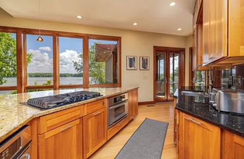 This unique custom-built 4,700 sq. ft. luxury lake house is located on the main Kerr Lake (water marker 21) just 1 mile from Downtown Clarksville, VA. The home offers fabulous views, a gorgeous back yard facing the lake, a boat dock, good water depth at the boathouse, and a hot tub. The outside boasts 3 balconies and 1 covered porch, a grill, and plenty of outside furniture. With 3 primary bedroom suites (all with newly renovated ensuite bathrooms and lake views), everyone is going to be happy!