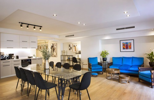 The A.U.R.A. Gracious Accessible Apartment is situated on the 1st floor (2d for U.S.) and is served by an elevator. There are 4 comfortable bedrooms (one with a queen size sofa bed) and 5 bathrooms (3 en suite and 2 next to the respective bedrooms). Please note that three bedrooms can be set as either king size or two single beds, based on our guests' convenience, while one bedroom is equipped with a sofa-bed. The bedding arrangements provided on this listing relate to the maximum capacity. In the spacious living room, another sofa bed may also accommodate 1-2 persons. Guests are kindly requested to define their desired bedding arrangements and we will be happy to have them prepared accordingly.