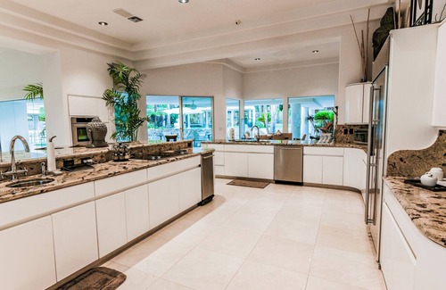 - Luxury Villa, with bonus pool house, Private Pool, Hot tub, rock water fall and slide, putting green, basketball, shuffle board, play gym, privately gated on circular driveway.