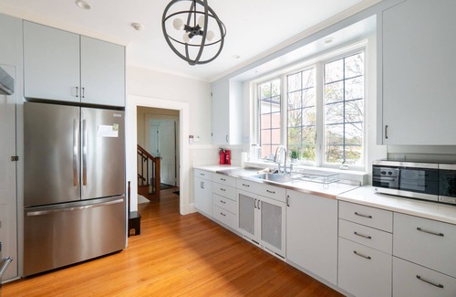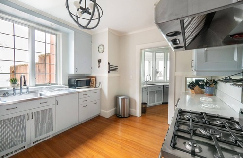 The large, fully stocked kitchen is a chef's dream, equipped with everything you need including two sinks, two refrigerators, a Bertozzone Italian range with oven, ample counter space, and storage. For the true gourmet, there is also an air fryer, kitchen aid mixer and food processor!